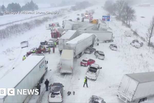 More than 100 vehicles were involved in a pile-up that closed the I96 interstate road in Ottawa County, Michigan on 19 January. State police reported that there had been multiple injuries but no fatalities. One man involved in the accident said he could barely see the cars in front of him due to the snow…
