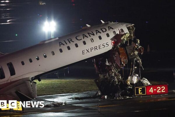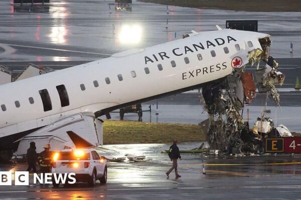 Two pilots have died after an Air Canada passenger plane collided with a firefighting truck at New York’s LaGuardia Airport on Sunday night. Video shows the aftermath of the collision on the airport’s runway. At least 41 passengers were taken to hospital. The airport – one of the busiest in the US – has reopened,…