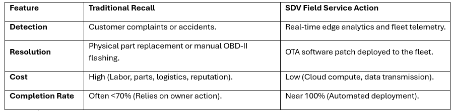 • Closed-Loop Feedback: Uses data analytics to monitor the success of the FSA patch in real-time and provides an immediate KPI on “Recall Closure Rate” without waiting for the dealer reports.